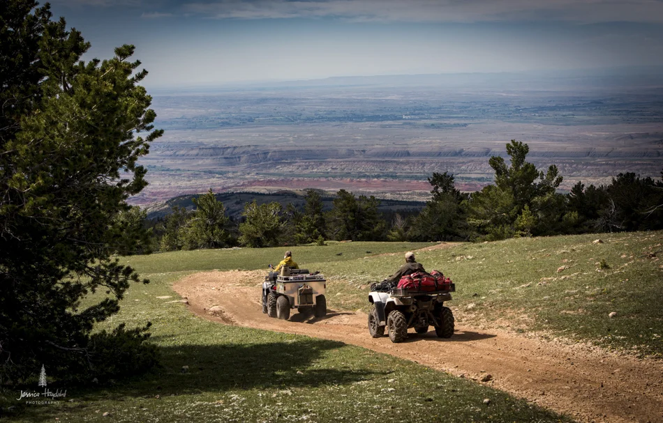 After unloading the ATV's and getting all of the gear strapped down, we headed out! The Hot sun was pounding down on our backs and we had 2 hours, around 26miles of ground to cover. We were headed UP. High up into the mountains, approximately 8500ft up.