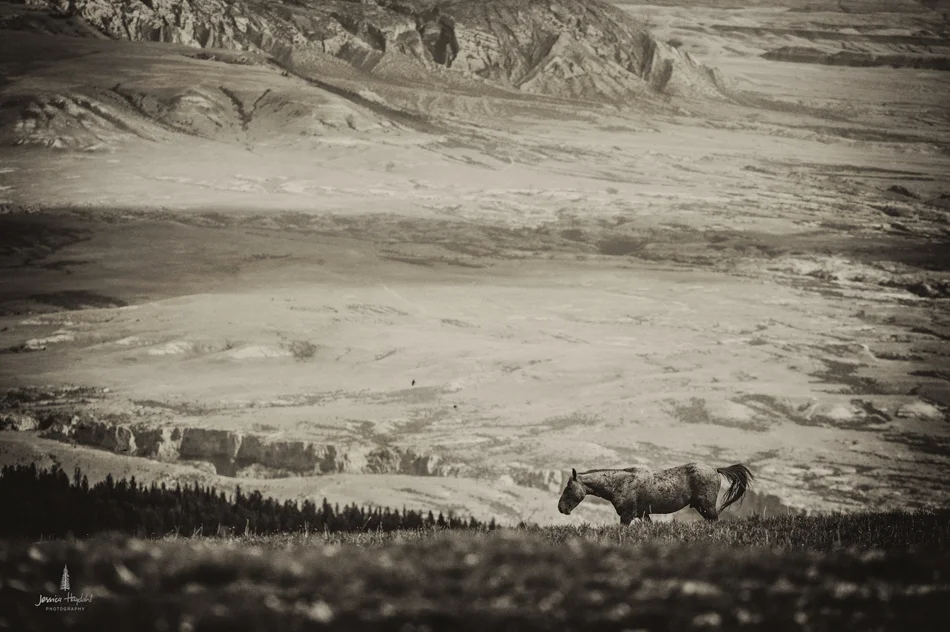 Wild Hores of Wyoming. The Pryor Mountain Wild Horse Range located in Wyoming is no secret to the world. You can google the range, buy books about the horses and you can even look up their names that people have given them. These horses are unique. Thier lineage links back to the Spanish Conquistadors and these horses ancestors have been wondering the mountains well before any of our time. The thing that I found to be so amazing, was that the horses are just up in the Pryor Mountains, existing all on their own in a serene oasis of an environment.
